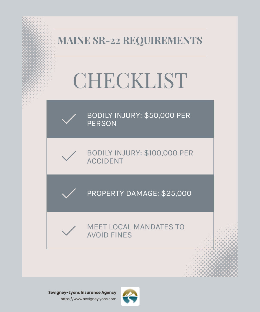 Each state has its own requirements for liability coverage, and Maine is no exception. The SR-22 ensures you meet these local mandates. For example, Maine requires a minimum of $50,000 per person for bodily injury, $100,000 per accident, and $25,000 for property damage. This might sound like a lot, but it's essential for legal driving in the state.